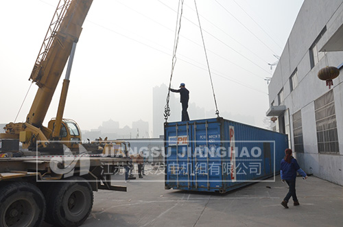 吊車將發(fā)電機(jī)組吊上拖車
